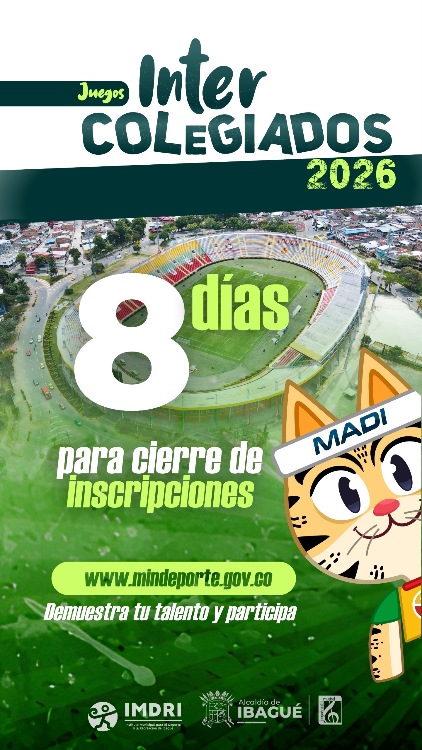 ¡Vamos Ibagué! Sensacional participación de nuestros diferentes conjuntos en la fase departamental de los Juegos Intercolegiados Las futuras promesas de la Capital Musical siguen en carrera y en varias disciplinas disputarán las finales para que nuestra bandera se ondee en lo más alto.